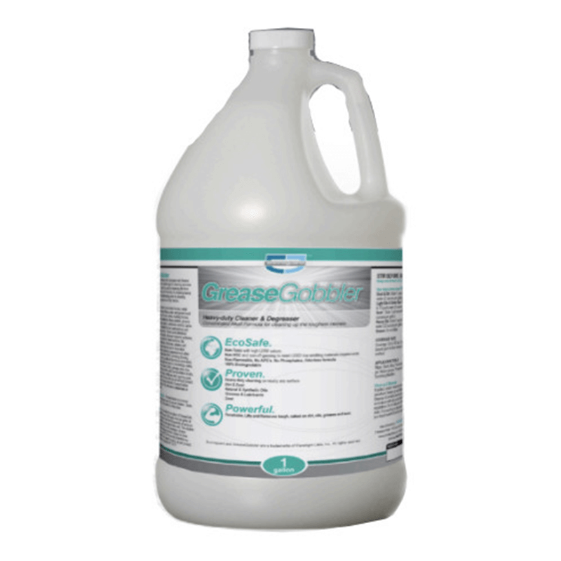 Each ready-to-use gallon of GreaseGobbler is expected to cover 300 square feet per gallon of ready-to-use cleaner. But since the porosity of surfaces will vary greatly, the coverage will also vary. The solution may be applied with a brush, squeegee, sprayer, or automatic scrubbing machine to obtain an even application. See MSDS for personal protection recommendations. Only apply if surface, air and product temperatures are between 40°-120°F.